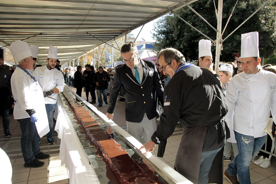 Στο βιβλίο των ρεκόρ Γκίνες βρίσκεται από σήμερα η Καρδίτσα και ο Σύλλογος ζαχαροπλαστών κατασκευάζοντας τη μεγαλύτερη νουγκατίνα σοκολάτα στον κόσμο, μήκους 100,21 μέτρων και βάρους περισσοτέρων από δύο τόνους!