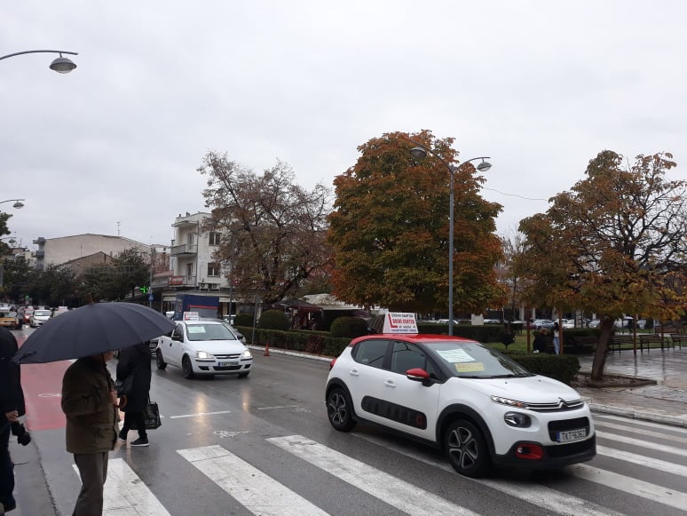 Με πωλητήρια στα επαγγελματικά τους αυτοκίνητα και κρεμασμένες μαύρες κορδέλες, οι εκπαιδευτές υποψήφιων οδηγών στα Τρίκαλα προχώρησαν σήμερα το πρωί σε πορεία διαμαρτυρίας, καθώς από τις αρχές του περασμένου Σεπτέμβρη δεν πραγματοποιούνται εξετάσεις οδήγησης, λόγω της αποχής των εξεταστών.