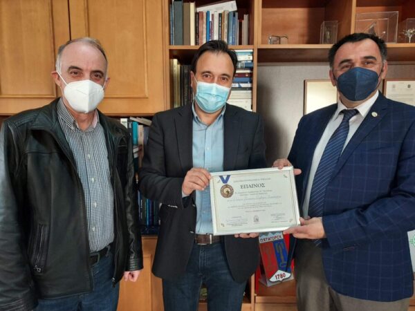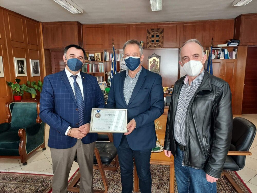 Διαδοχικές συναντήσεις με τον Αντιπεριφερειάρχη Τρικάλων κ. Χρήστο Μιχαλάκη και τον Δήμαρχο Τρικκαίων κ. Δημήτριο Παπαστεργίου είχαν τη Δευτέρα 21 Φεβρουαρίου ο πρόεδρος του Σωματείου Ιεροψαλτών Τρικάλων κ. Αθανάσιος Δημητρίου μαζί με τον αντιπρόεδρο Ευθύμιο Σπύρου για να επιδώσουν και στους δύο τοπικούς άρχοντες τιμητικό έπαινο μαζί με το μετάλλιο του Σωματείου, για τη συνεισφορά και τη στήριξη που παρείχαν στη διοργάνωση του 1ου Διεθνούς Συνεδρίου της Ιεροψαλτικής Κοινότητας “Ψαλτική 2.0” το οποίο πραγματοποιήθηκε στην πόλη μας τον περασμένο Νοέμβριο. Κατά τις συναντήσεις συζητήθηκαν και θέματα ευρύτερης συνεργασίας πάνω σε θέματα που απασχολούν τον κλάδο των Ιεροψαλτών.