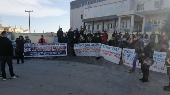 Κινητοποίηση Συμβασιούχων στο Νοσοκομείο Καρδίτσας ενάντια στις σχεδιαζόμενες απολύσεις τους & για μετατροπή των Συμβάσεων σε Αορίστου χρόνου. Συμμετείχε αντιπροσωπεία συμβασιούχων από το ΓΝΤρικάλων.