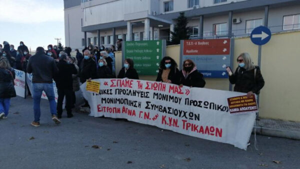Στην κινητοποίηση συμμετείχε αντιπροσωπεία των συμβασιούχων του Νοσοκομείου Τρικάλων , οι