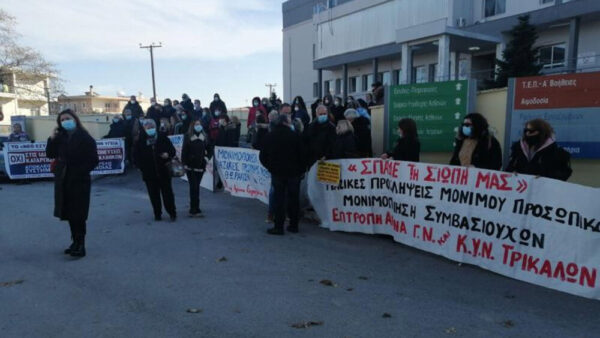 Στήριξη των συμβασιούχων ΓΝΤρικάλων στην διαμαρτυρία του ΓΝΚαρδίτσας