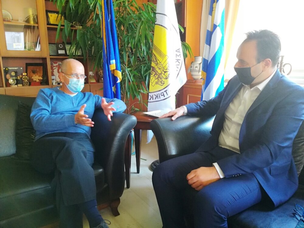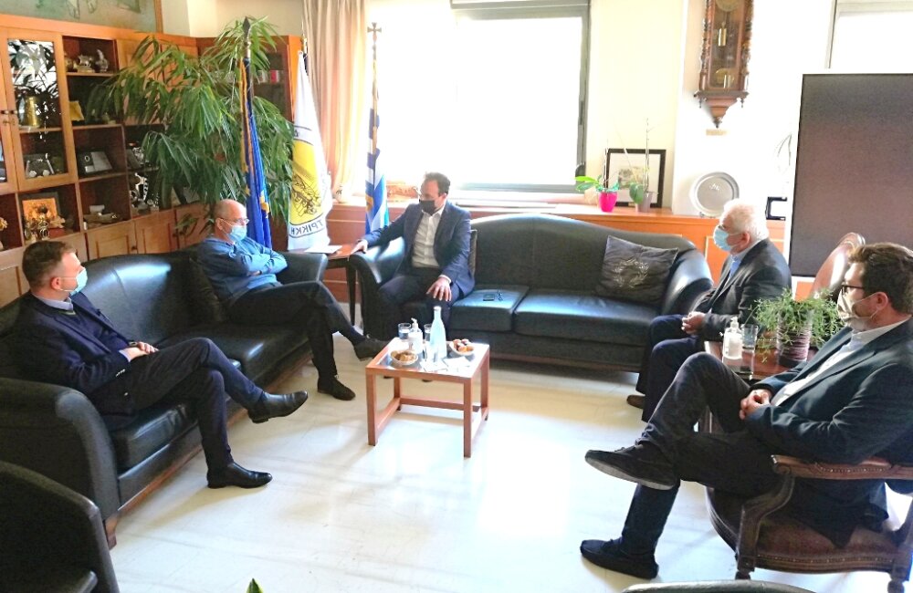 Ο Δήμαρχος Τρικκαίων και πρόεδρος της ΚΕΔΕ, Δημήτρης Παπαστεργίου, υποδέχθηκε τον εκπρόσωπο του Ισραηλινού κράτους στο Δημαρχείο Τρικκαίων την Πέμπτη 29 Οκτωβρίου 2020.
