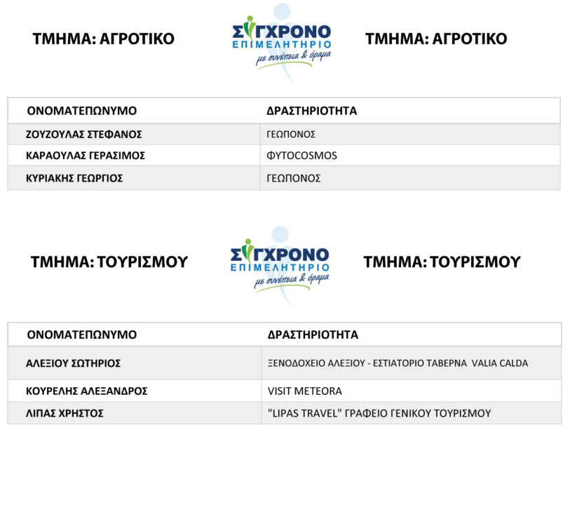 Οι 99 υποψήφιοι του συνδυασμού ΣΥΓΧΡΟΝΟ ΕΠΙΜΕΛΗΤΗΡΙΟ είναι: