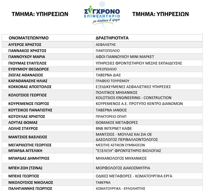 Οι 99 υποψήφιοι του συνδυασμού ΣΥΓΧΡΟΝΟ ΕΠΙΜΕΛΗΤΗΡΙΟ είναι: