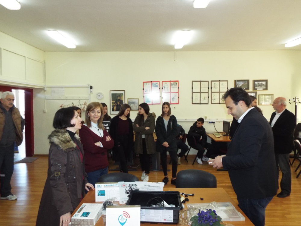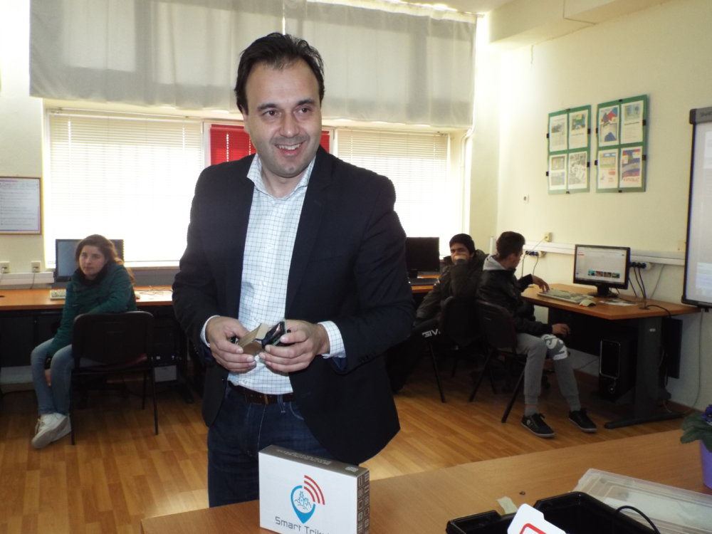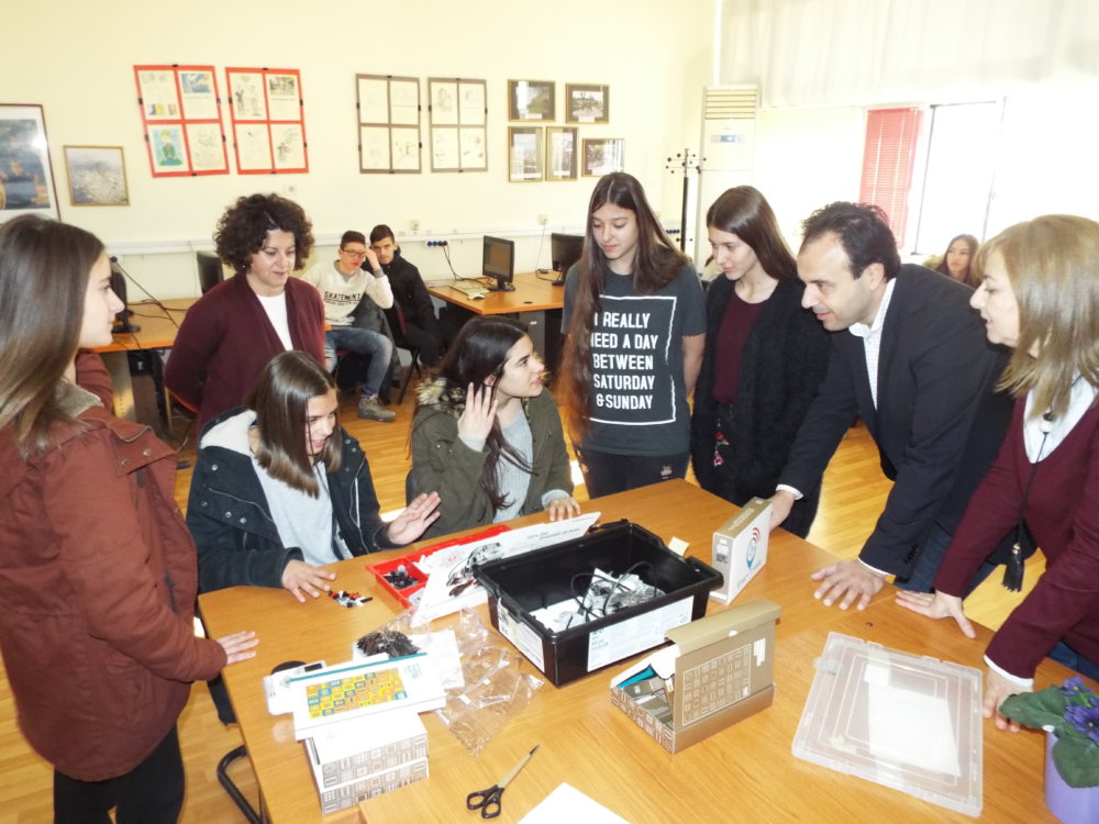 Ο κ. Παπαστεργίου παρέδωσε τα 4 κιτ σε μαθητές/τριες της Γ τάξης του 5ου Γυμνασίου Τρικάλων, στο Εργαστήρι Πληροφορικής, παρουσία της αντιδημάρχου παιδείας κ. Εφης Λεβέντη, της διευθύντριας κ. Φανής Σμιξιώτη, του υποδιευθυντή κ. Θανάση Μόσχοβου, του υπευθύνου του ΚΕΠΛΗΝΕΤ κ. Λ. Μποντίλα, των εκπαιδευτικών Πληροφορικής κ. Παναγιώτα Βακουφτσή (υπεύθυνης του εργαστηρίου) και Ευαγγελία Ζαφείρη, καθώς και καθηγητών του σχολείου.