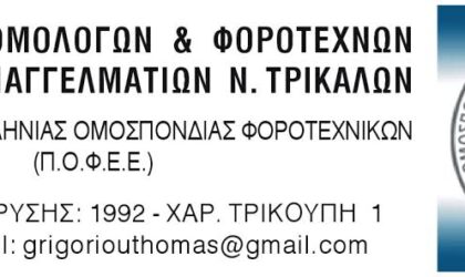Μετά την απόφαση της εκλογοαπολογιστικής συνέλευσης της 9ης Δεκεμβρίου 2021 η Ε.Ο.Φ.Ε.Ε. (ΕΝΩΣΗ ΟΙΚΟΝΟΜΟΛΟΓΩΝ-ΦΟΡΟΤΕΧΝΙΚΩΝ ΕΛΕΥΘΕΡΩΝ ΕΠΑΓΓΕΛΜΑΤΙΩΝ) Ν. Τρικάλων, προχωρά στη...