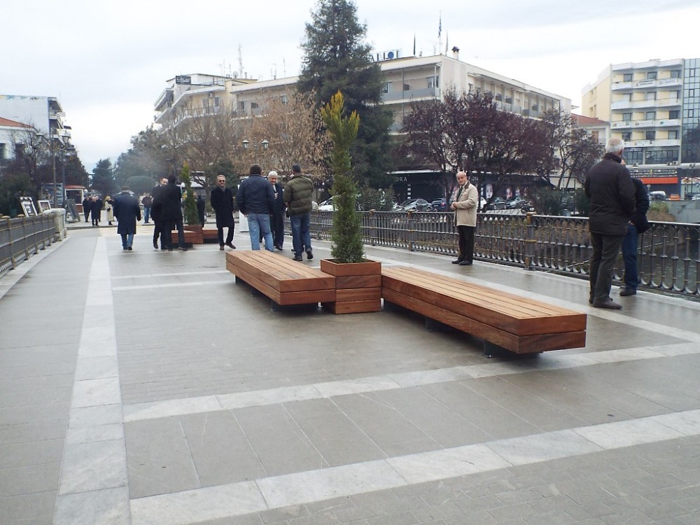 Το 1997 έγινε η πεζοδρόμηση της κεντρικής γέφυρας όπως προέβλεπε η κυκλοφοριακή μελέτη, του Γενικού Πολεοδομικού Σχεδίου του 1985. Η γέφυρα λειτουργούσε ως συνδετικός κρίκος που ένωνε την παλαιά με την νέα πόλη. Ετσι, καθημερινά δεχόταν το μεγαλύτερο μέρος της κυκλοφορίας οχημάτων της πόλης άρα και μεγάλο φορτίο διερχόμενων τροχοφόρων.