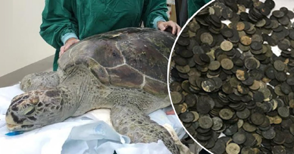 Η χελώνα έφαγε 5 κιλά νομίσματα τα οποία παρέμειναν στο στομάχι της και της προκάλεσαν προβλήματα. Οι κτηνίατροι πραγματοποίησαν μια 7ωρη εγχείρηση σε αυτή τη χελώνα για να της αφαιρέσουν όλα τα κέρματα.