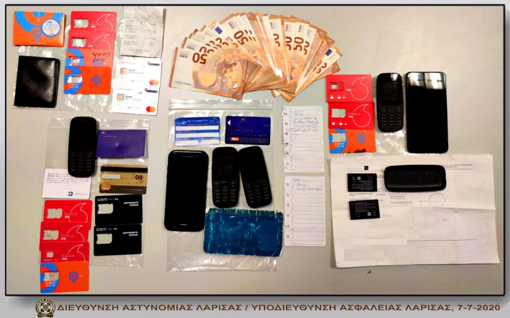 Κατά τις νομότυπες έρευνες που διενεργήθηκαν σε οικίες αλλά και σε οχήματα των δραστών, βρέθηκαν και κατασχέθηκαν πλήθος κινητών τηλεφώνων, στελεχών καρτών sim, αποδείξεις ανάληψης μετρητών, χειρόγραφες σημειώσεις με ονόματα και χρηματικά ποσά, κάρτες και βιβλιάρια τραπεζών, παραστατικά ανάληψης χρημάτων, καθώς και το χρηματικό ποσό των (1.960) ευρώ, ως προερχόμενο από την παράνομη δραστηριότητά τους.