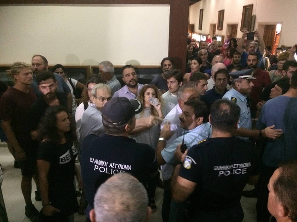 Διαμαρτυρόμενοι πολίτες επιχείρησαν να πάρουν αυθαίρετα τον λόγο, με τον πρόεδρο του οργάνου να μην τους το επιτρέπει.
