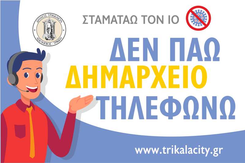 «Ασπίδα» στην προσπάθεια μείωσης των κρουσμάτων του Covid-19 από τον Δήμο Τρικκαίων. Στο πλαίσιο της δεύτερης καραντίνας από το Σάββατο 7 Νοεμβρίου 2020, ο Δήμος Τρικκαίων υπενθυμίζει ότι, βάσει των υγειονομικών πρωτοκόλλων, η εξυπηρέτηση των πολιτών γίνεται με προτεραιότητα σε επείγουσες περιπτώσεις και υποχρεωτικά κατόπιν ραντεβού με τηλεφωνική κλήση ή επικοινωνία μέσω ηλεκτρονικού ταχυδρομείου στο info@trikalacity.gr ή στο 20000@trikalacity.gr