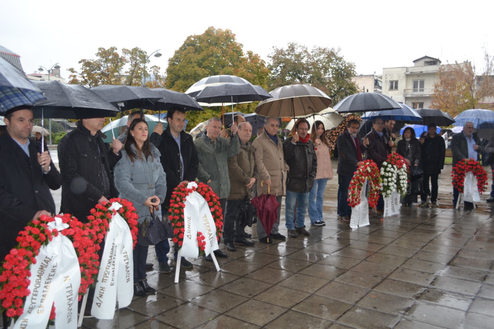 Μετά την τήρηση ενός λεπτού σιγής οι μικροί μαθητές έψαλαν τον εθνικό ύμνο. Παρέστησαν επίσης, η αντιδήμαρχος κ. Σοφία Αλεστά, ο τ. Δήμαρχος Τρικκαίων κ. Χρήστος Λάππας, η δημοτική σύμβουλος κ. Ντ. Δήμα, ο πρ. Δήμαρχος κ. Γ. Σπαθής, στελέχη κομμάτων και πολίτες.