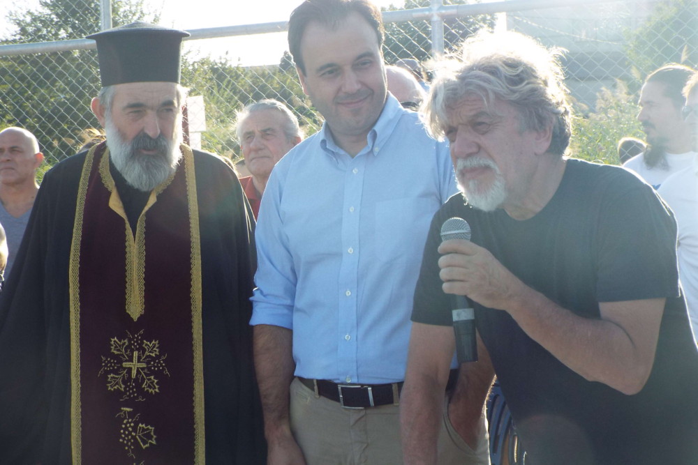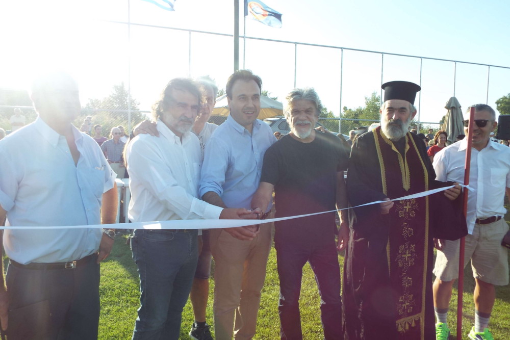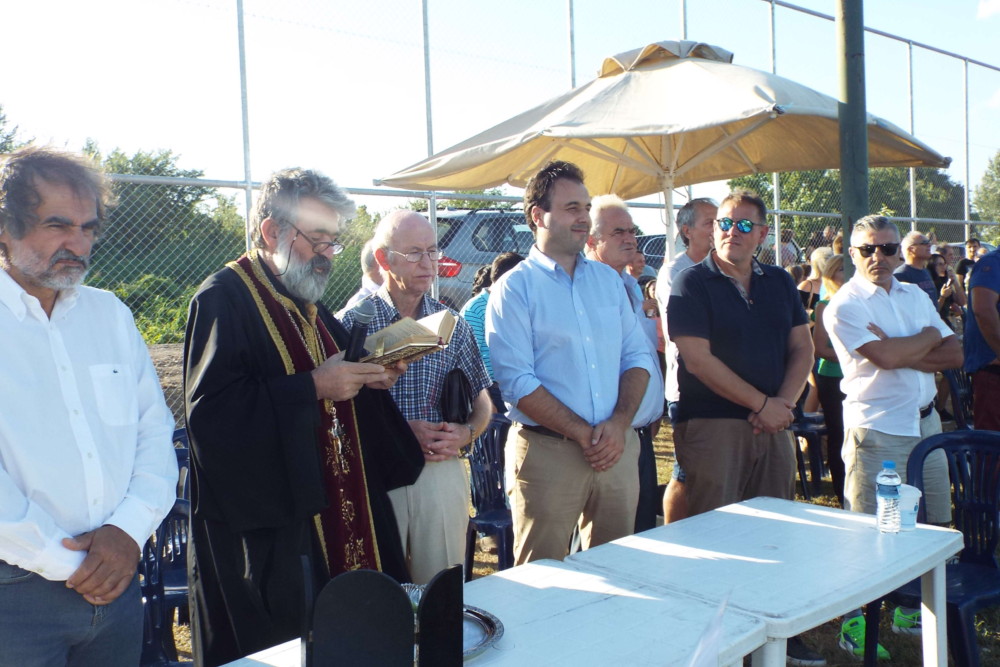 Ο περιφερειακός σύμβουλος κ. Ντίνος Μπάρδας (η Περιφέρεια Θεσσαλίας χρηματοδότησε την περίφραξη) αναφέρθηκε στη σημασία των έργων για τον αθλητισμό ενώ ο πρόεδρος της ομάδας κ. Αιμίλιος Χρηστάκος αναφέρθηκε στη χρησιμότητα του γηπέδου. Ο προπονητής της ομάδας του ΕΣΗ, ο ηθοποιός κ. Γιάννης Βούρος τόνισε την αναγκαιότητα, κάθε προσπάθεια, ανεξαρτήτως μεγέθους, να γίνεται και να προωθείται, συνδέοντας τον φιλικό αγώνα για τη «Φλόγα» με το γήπεδο στην περιφέρεια της πόλης.
