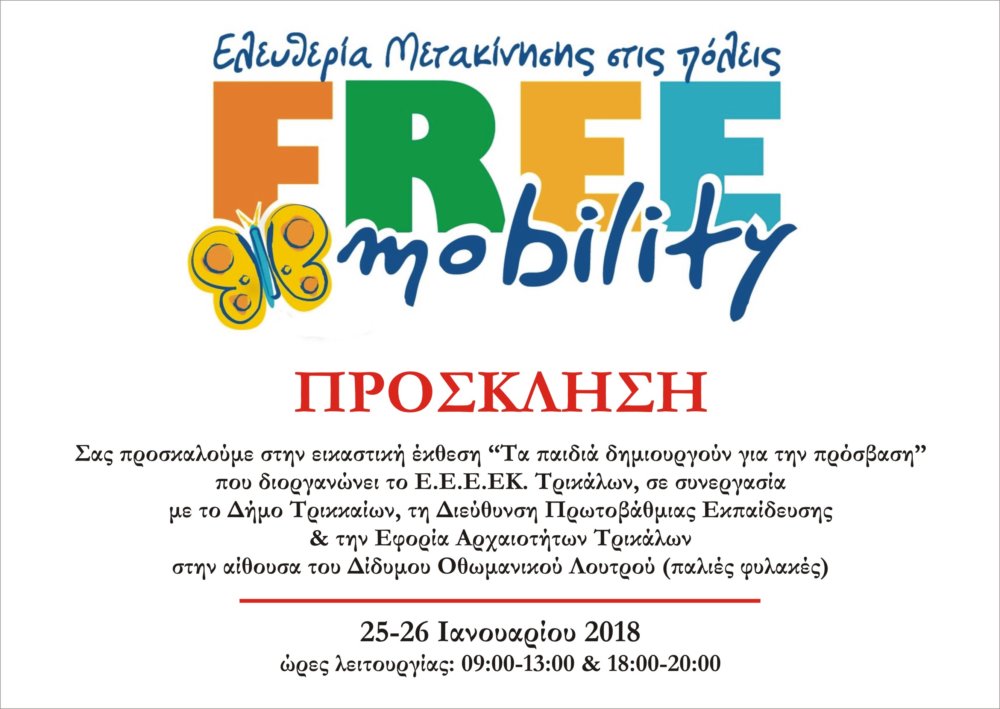 Στόχος της έκθεσης είναι η ανάδειξη στο ευρύ κοινό, το θέμα της ελεύθερης μετακίνησης και πρόσβασης, μέσα από τη δημιουργικότητα και φαντασία των μαθητών. Θα εκτεθούν έργα που δημιούργησαν μαθητές από 28 δημοτικά σχολεία της πόλης των Τρικάλων.