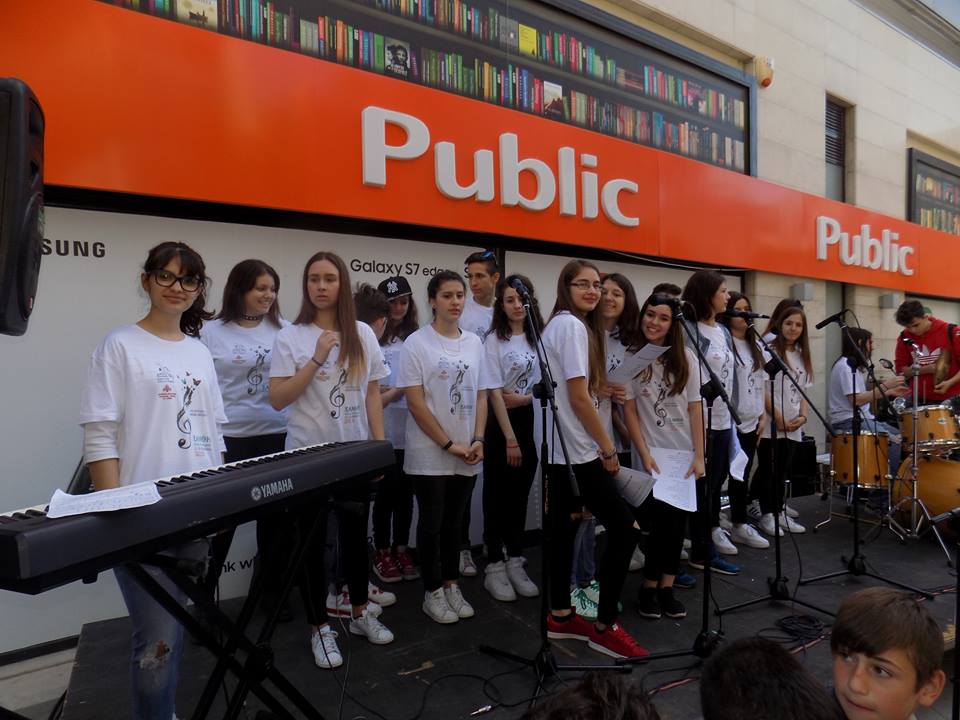 Την Παρασκευή το πρωί και ενώ όλη η πόλη έχει μεταμορφωθεί σε μια ατέλειωτη μουσική σκηνή για δεκάδες παιδιά, μία ομάδα μαθητών μας παρουσίασε ζωντανά το τραγούδι «Le Goût de la Vie» «Η Γεύση της Ζωής». Πρόκειται για ένα τραγούδι που δημιούργησαν οι μαθητές του Γ1 τμήματος στο πλαίσιο του μαθήματος των γαλλικών και του Διαγωνισμού Γαλλοφωνίας 2016, πάνω στη μουσική του τραγουδιού του Justin Bieber “Love Yourself”. Οι στίχοι των μαθητών μας, ανταποκρινόμενοι στο θέμα του διαγωνισμού, παρουσιάζουν την ελληνική γαστρονομία αλλά ταυτόχρονα αποτελούν έναν πραγματικό ύμνο στη ζωή καθώς μιλούν για έναν νέο που μετά από ένα αυτοκινητιστικό ατύχημα χάνει όλες του τις αισθήσεις εκτός από τη γεύση. Αν και κάτι τέτοιο μοιάζει ακατόρθωτο, με την συνεχή υποστήριξη της μητέρας του, καταφέρνει να πραγματοποιήσει το μεγάλο όνειρο της ζωής του και να γίνει ένας επιτυχημένος σεφ, ξακουστός στα πέρατα της γης.