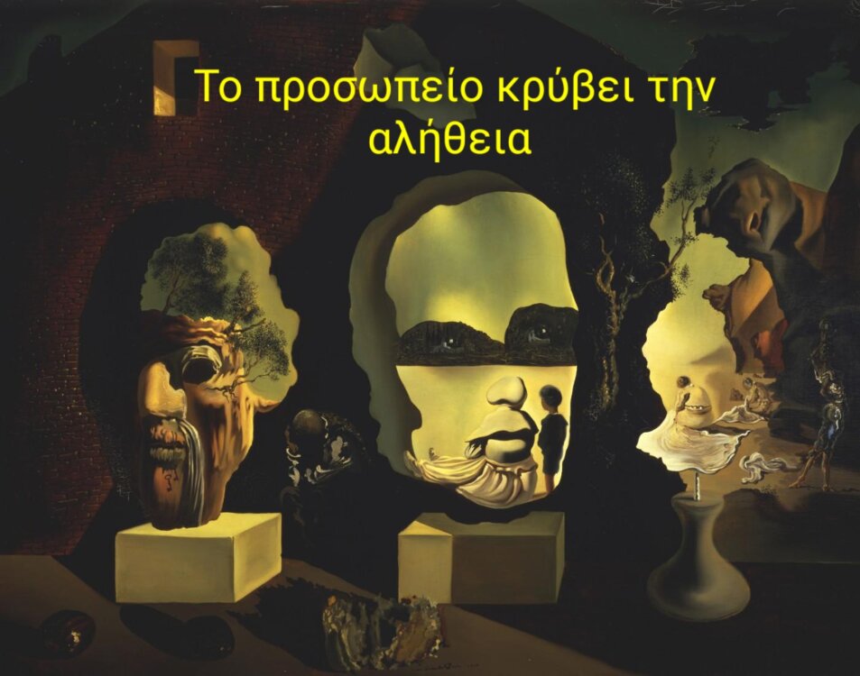 στην όψη πάνω της ψυχής μας;/ …Η μάσκα η αληθινή δεν ξέρει ότι βρίσκεται πίσω απ’ την άλλη μάσκα/