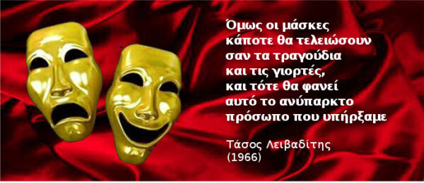 «Εξάλλου μια σειρά από μάσκες κρέμονται/ στην τοίχο, που τις χρησιμοποιήσαμε μάσκες/ άλλοτε για ν’ αρέσουμε ή να ωφεληθούμε/ κι άλλοτε μονάχα από συνήθεια ή σαν την αυτόματη κίνηση…/ Όμως οι μάσκες κάποτε θα τελειώσουν…/ και τότε θα φανεί αυτό το ανύπαρκτο/ πρόσωπο που υπήρξαμε…».