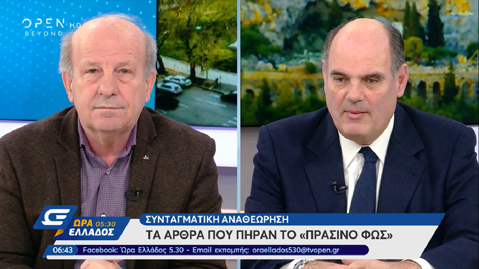 Σε πολιτική συζήτηση στο OPEN TV, στην εκπομπή «Ώρα Ελλάδος 5.30» με την Αμαλία Κάντζου και τον Βαγγέλη Γιακουμή, βρέθηκε το πρωί της Παρασκευής, 15 Φεβρουαρίου, ο βουλευτής Τρικάλων του ΣΥ.ΡΙΖ.Α Χρήστος Σιμορέλης. Η συζήτηση εξελίχθηκε γύρω από τα σημαντικά θέματα της επικαιρότητας, όπως η Συνταγματική Αναθεώρηση και η προστασία της Πρώτης Κατοικίας.