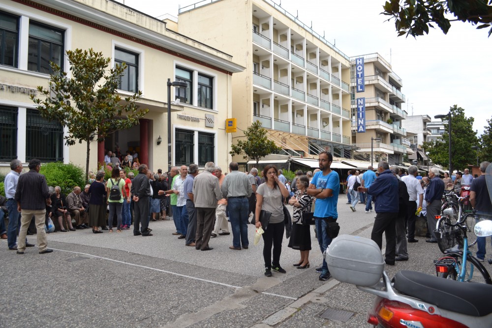 Απίστευτα μεγάλες ουρές συνταξιούχων συναντά κανείς αυτή την ώρα έξω από τα επτά καταστήματα τραπεζών στα Τρίκαλα που έχει ορίσει το υπουργείο Οικονομικών για να πληρωθεί σήμερα ένα μικρό τμήμα της σύνταξης.