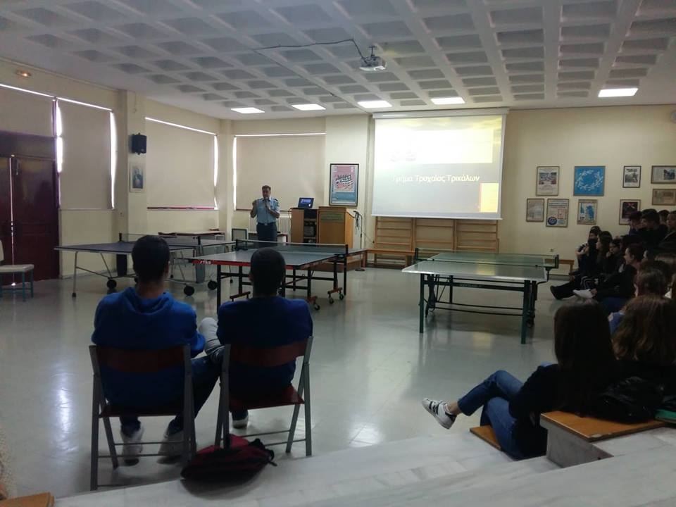 Χθες ο εκπρόσωπος της Τροχαίας Τρικάλων, κ. Αχιλλέας Γκούτσιας, υπαστυνόμος Α΄, επισκέφθηκε το σχολείο μας για να ενημερώσει τους μαθητές της Γ΄ τάξης για θέματα κυκλοφοριακής αγωγής και να προβάλει σχετικά βίντεο πολύ σημαντικά για την ευαισθητοποίησή τους.