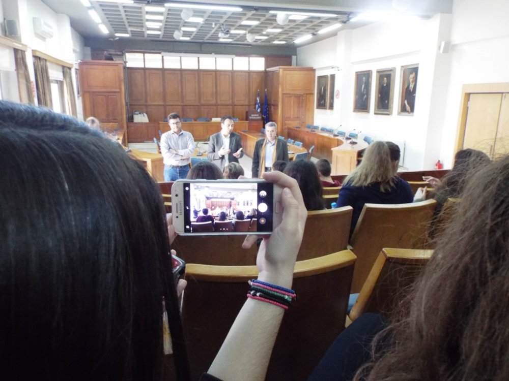 Τα στοιχεία που συνθέτουν την τεχνολογικά αναπτυγμένη πόλη των Τρικάλων, αναζήτησαν σήμερα μαθητές του 9ου Γυμνασίου Τρικάλων. Στο πλαίσιο προγράμματος για την «έξυπνη πόλη», οι μαθητές και οι μαθήτριες προγράμματος με τον εκπαιδευτικό κ. Στεφ. Μπουλογιώργο επισκέφθηκαν την Τρίτη 13 Μαρτίου 2018 τον Δήμαρχο Τρικκαίων. Με τον κ. Δημήτρη Παπαστεργίου είχαν μια εκτενή συνομιλία σε θέματα που σχετίζονται με την τεχνολογία και τις εφαρμογές της στα Τρίκαλα. Επίσης, τέθηκαν ζητήματα για παρεμβάσεις που ζήτησαν οι μαθητές. Ο Δήμαρχος Τρικκαίων αναφέρθηκε στην «κεντρική ιδέα» της πολιτικής που εφαρμόζεται και αφορά στη σύγχρονη πόλη, με «έξυπνες» εφαρμογές. Και τόνισε, ότι η πόλη είναι «έξυπνη», επειδή η κοινωνία είναι έξυπνη. Στο πλαίσιο αυτό, αναφέρθηκε στα ζητήματα που αφορούν στα τεχνολογικά επιτεύγματα, με ξενάγηση και παρουσίασή τους στο control room του Smart Trikala, καθώς και στο e-ΚΕΠ. Παρέστη και ο πρόεδρος της e-trikala ΑΕ κ. Γ. Κωτούλας, αναφερθείς στη σημασία του Μύλου των Ξωτικών για την τοπική κοινωνία.