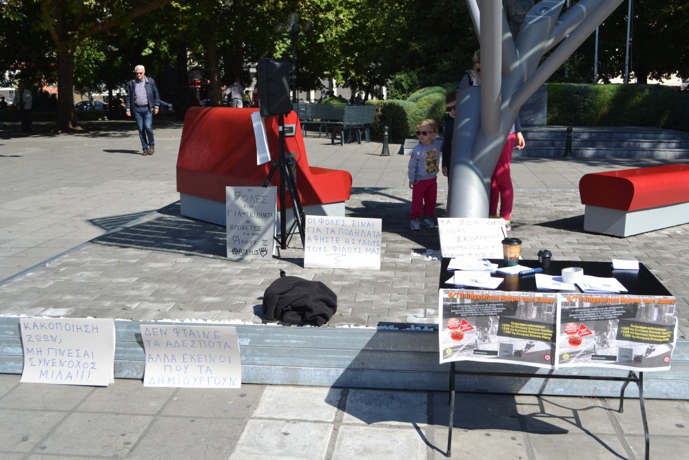 Τα μέλη των συλλόγων συγκεντρώθηκαν χθες στην κεντρική πλατεία των Τρικάλων, με αφορμή την Παγκόσμια ημέρα των ζώων, υπήρξε διαμαρτυρία για την  συνεχιζόμενη ρίψη δηλητηριασμένων δολωμάτων που προκάλεσε τον βάρβαρο θάνατο πολλών ζώων.