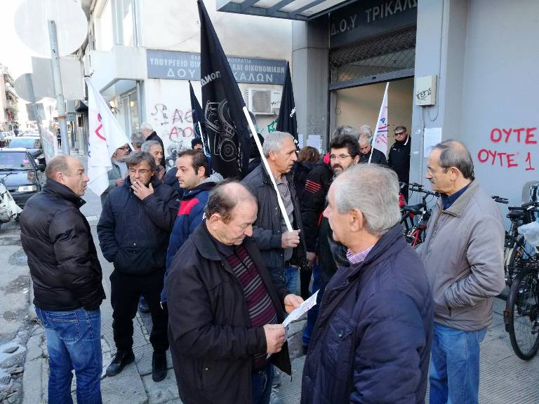 Την αγωνιστική τους καλημέρα… στην Εφορία Τρικάλων είπαν σήμερα στις 10 το πρωί οι Τρικαλινοί αγρότες οι οποίοι με μαύρες σημαίες και πανό που ανάρτησαν διαμαρτυρήθηκαν για την υψηλή φορολογία, τα χαράτσια και το υψηλό κόστος παραγωγής.