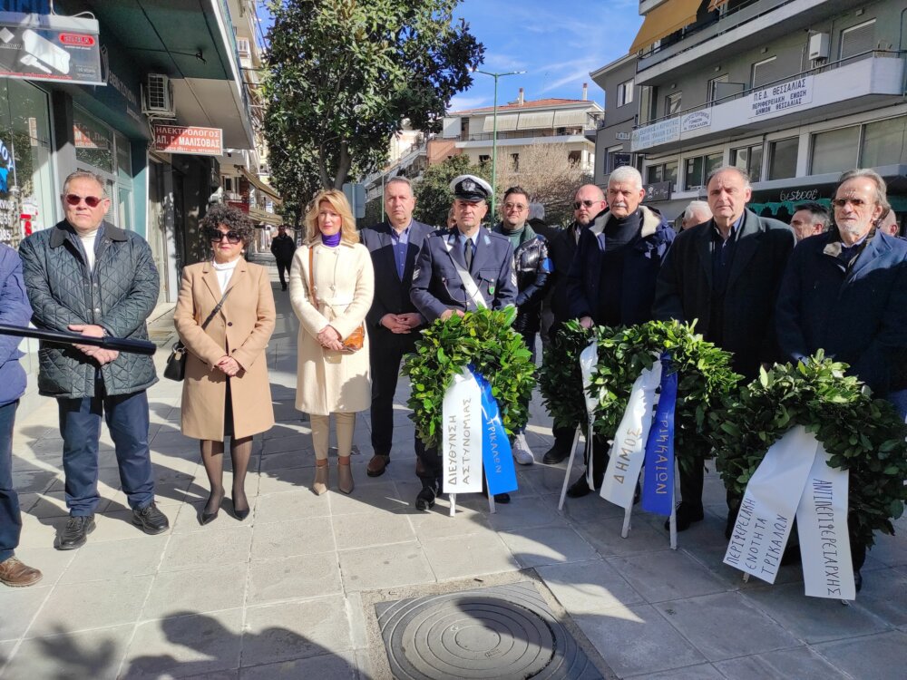 Παρέστη η βουλευτής της ΝΔ Κατερίνα Παπακώστα, ο αντιδήμαρχος Τρικκαίων Μιχάλης Λάππας, η εντεταλμένη σύμβουλος Δημοσίων Σχέσεων Εφη Λεβέντη, ο πρόεδρος της ΔΕΥΑΤ Χρήστος Μπλουγούρας, οι δημοτικοί σύμβουλοι Βίβιαν Τέγου και Θωμάς Μερτσιώτης, ο επικεφαλής της μείζονος αντιπολίτευσης στο Δημοτικό Συμβούλιο Γιώργος Ηλιάδης και οι δημοτικοί σύμβουλοι Στέφανος Αναστασίου και Γιάννης Τριγώνης, ο πρ. βουλευτής Σάκης Παπαδόπουλους, απόγονοι των θανόντων και πολίτες.