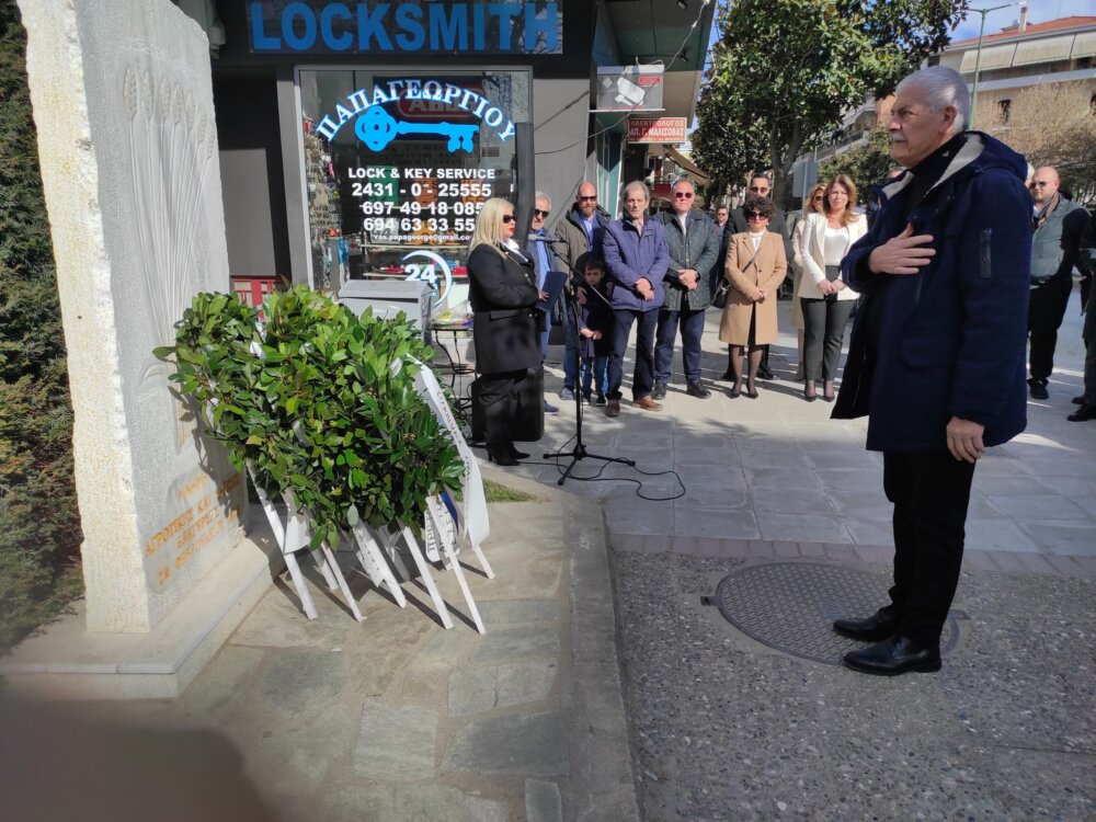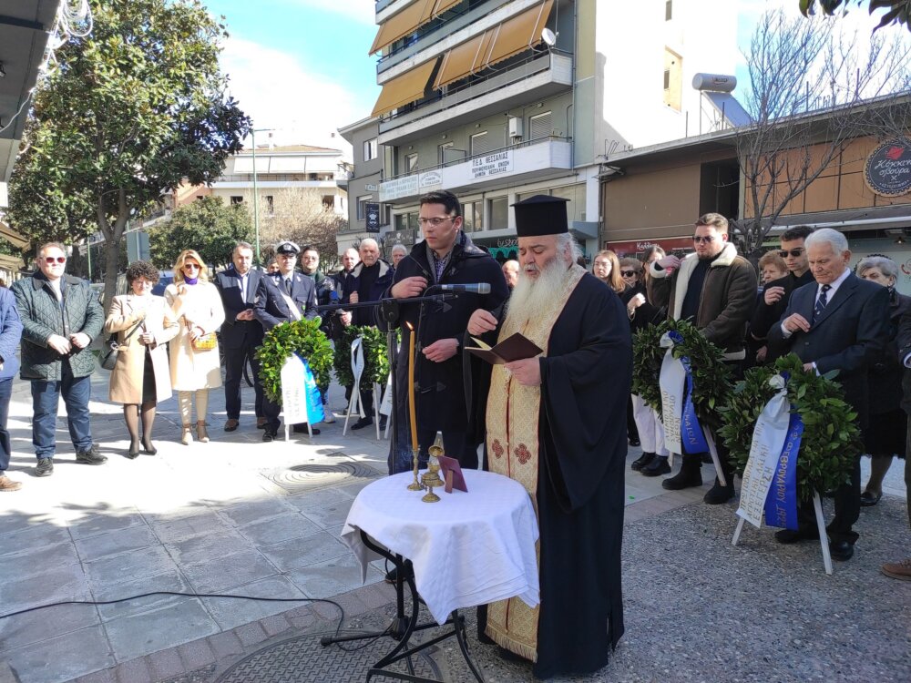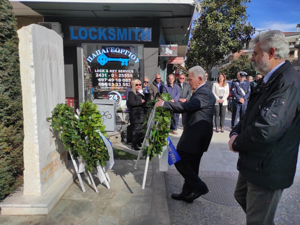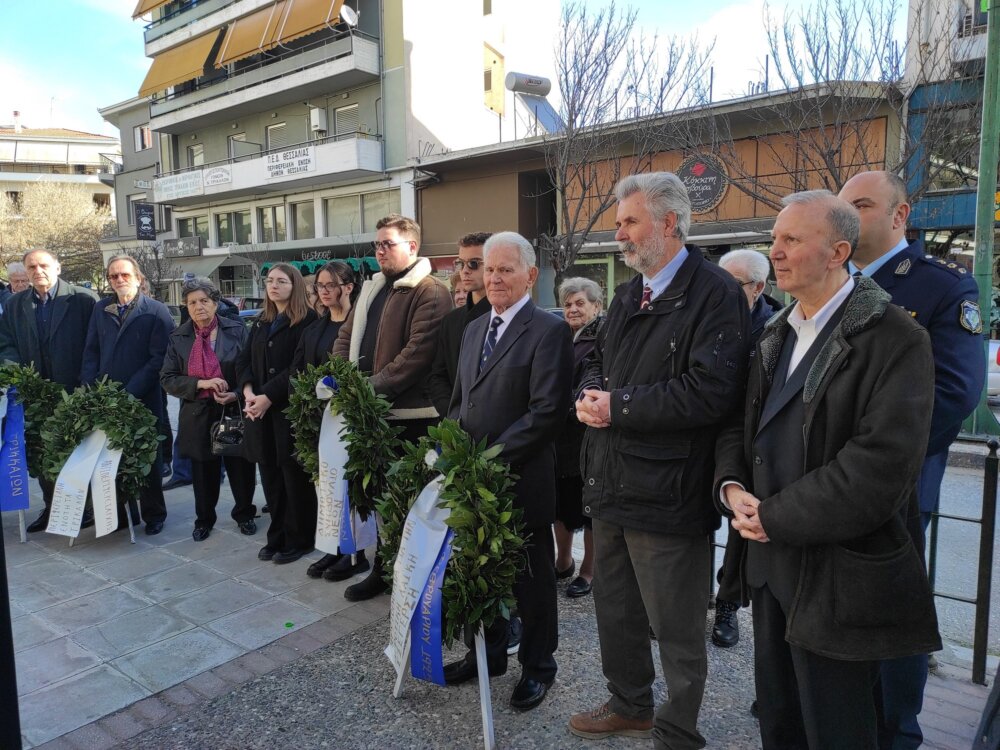 Προηγήθηκε επιμνημόσυνη δέση, ενώ κατατέθηκαν στεφάνια από τους αντιδήμαρχο Τρικκαίων Τάκη Παζαΐτη, εντεταλμένο σύμβουλο Έργων της ΠΕ Τρικάλων Θανάση Τσιάρα, Νίκο Γκόγκο Υποναύαρχο ΠΝ ε.α., εκπροσωπώντας την «Πρωτοβουλία για την αγροτική και λαϊκή εξέγερση», κ. Θαν. Φαλτάκα αντιπρόεδρο του Εμπορικού Συλλόγου Τρικάλων εκπρόσωπο της Δ/νσης Αστυνομίας Τρικάλων και κ. Γιάννη Λάππα, πρόεδρο του Δημοτικού Συμβουλίου Νέων Δήμου Τρικκαίων.
