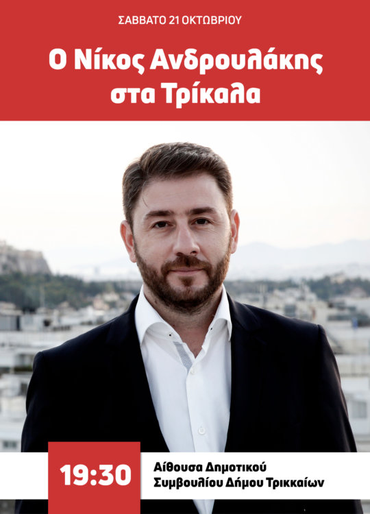 Ο Νίκος Ανδρουλάκης παίρνει τη σκυτάλη των υποψηφίων της κεντροαριστεράς που θα επισκεφθούν τα Τρίκαλα.
