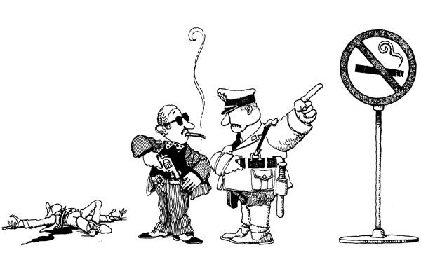 Είναι εύκολο να’ σαι σκληρός κι αδέκαστος με τις γιαγιάδες στις λαϊκές, τους αστέγους, τους ανέργους, τους φτωχούς και τους ανήμπορους, τους μετανάστες και τους πιτσιρικάδες που πετάνε μια πέτρα στις διαδηλώσεις και στα γήπεδα.