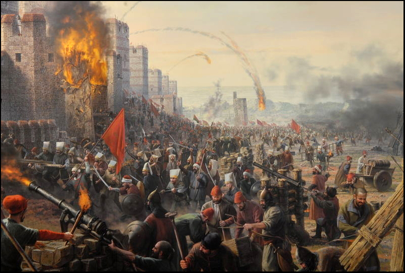 Ο Μωάμεθ ο Πορθητής, για να ευχαριστήσει τουςστρατιώτες του, τούς δίνει την άδεια για τρεις ολόκληρες μέρες να κάνουν ό,τι θέλουν!Φωτιές παντού! Οι χριστιανοί βασανίζονται και κατακρεουργούνται!  Τα καλντερίμια της Κωνσταντινούπολης βάφονται με χριστιανικό αίμα.Οι γυναίκες βιάζονται ομαδικά! Οι Αγαρηνοί δεν σεβάστηκαν ούτε τα ανήλικα κοριτσάκια!Για το Ισλάμ, οι βιασμοί των «απίστων» γυναικών δεν είναι αμαρτία! Είναι ένα νόμιμο «τρόπαιο», τουλάχιστον σε καιρό (του «ιερού») πολέμου! Προβλέπονται όλ’ αυτά στο ιερό τους βιβλίο, το «Ιερό»και «Άγιο Κοράνιο», όπως το αποκαλεί ο Οικουμενικός μας Πατριάρχης κ. Βαρθολομαίος!1(Εξ’ άλλου, κατά την πίστη των Μουσουλμάνων τα κορίτσια  μπορούν να παντρευτούν και να έρθουν σε σεξουαλική επαφή μόλις τους έρθει η περίοδος, δηλαδή από το δημοτικό σχολείο!Άλλωστε, και ο μεγάλος προφήτης τους, ο Μωάμεθ, μεταξύ των συζύγων του είχε και ένα κοριτσάκι εννέα (9) ετών, την Αΐσα!)