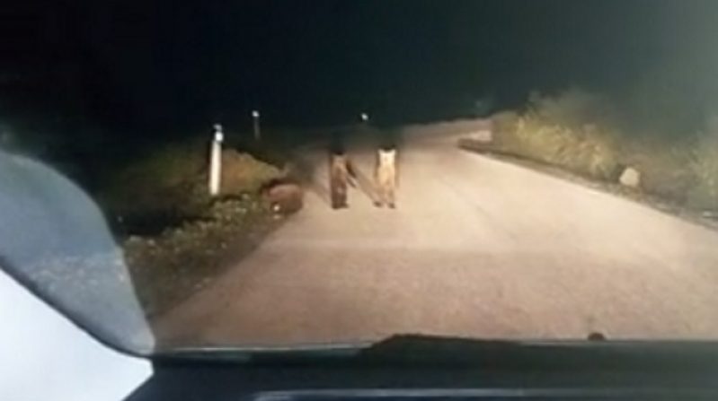 Τρία νεαρά αρκουδάκια βρίσκονταν στο δρόμο και εκείνος δεν έχασε την ευκαιρία να τραβήξει βίντεο με το κινητό του τηλέφωνο και να το ανεβάσει στο youtube. .Όπως είχαν αναφέρει και σε παρόμοια περίπτωση πριν από 4 χρόνια οι ειδικοί, τα αρκουδάκια πολύ πιθανόν, να έχουν χάσει την μητέρα τους και την ημέρα κρύβονται, ενώ το βράδυ βγαίνουν για αναζήτηση τροφής.