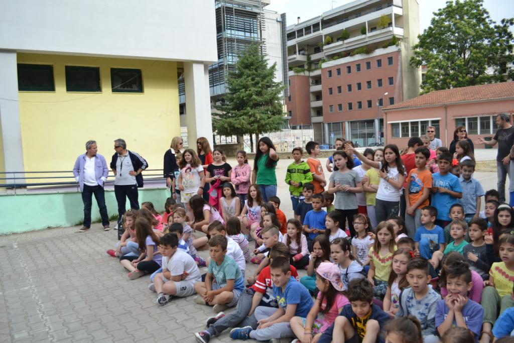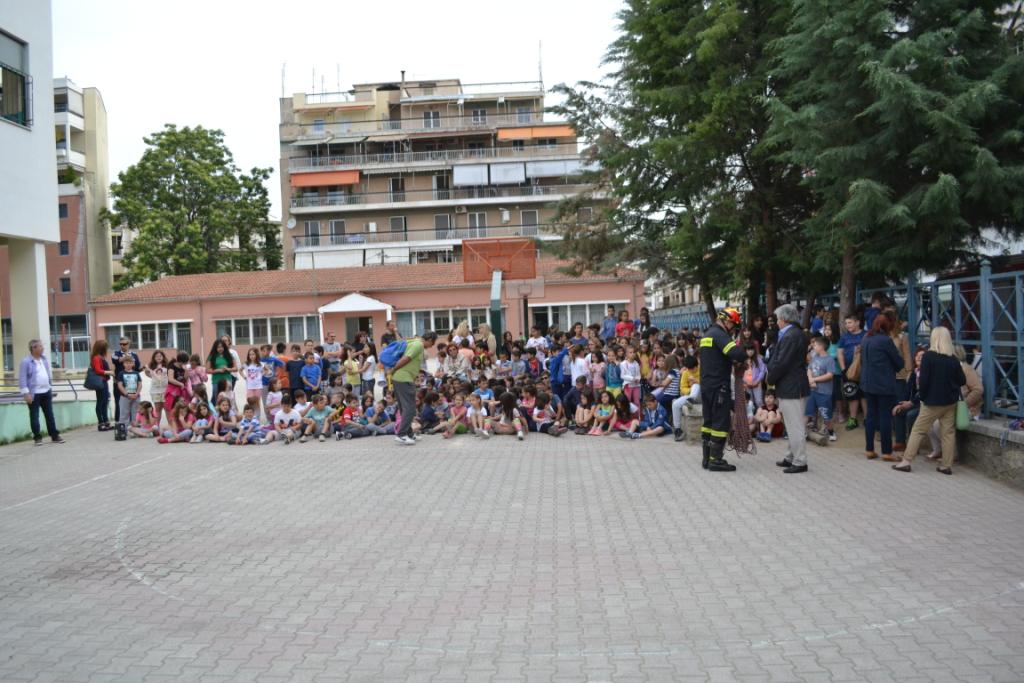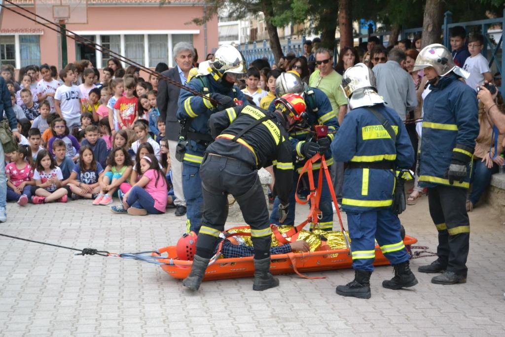 Μικροί μαθητές αλλά και εκπαιδευτικοί έμειναν καθηλωμένοι παρακολουθώντας την εξέλιξη της άσκησης από το προαύλιο του σχολείου.