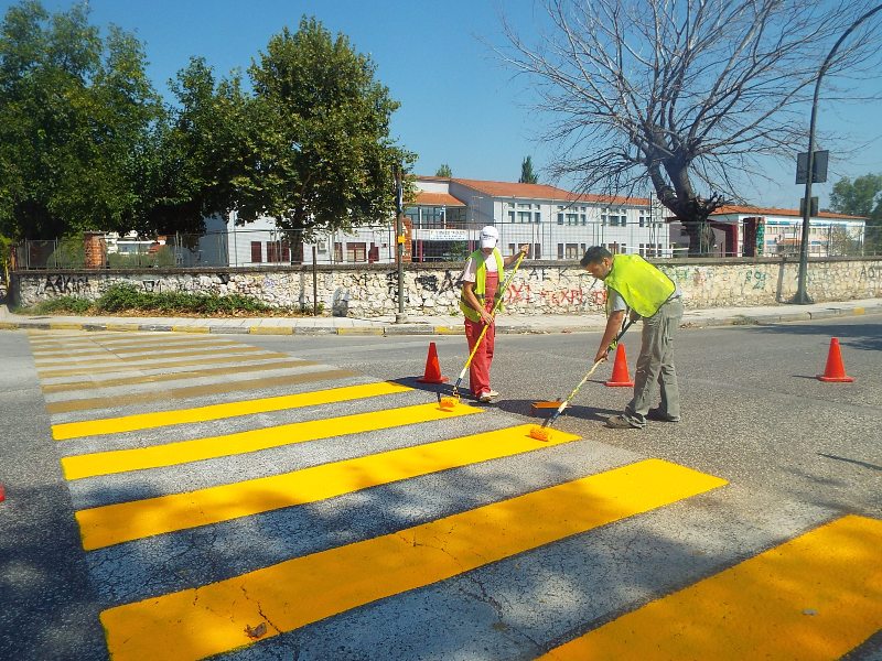 Μάλιστα αυτή η βαφή που χρησιμοποιείται, είναι ενδεδειγμένη για σχολικές μονάδες, έχει, δε, και δυνατότητα να γίνεται ορατή κατά τις βραδινές ώρες. Ο Δήμος Τρικκαίων θέτει ως βασικό στόχο της κοινωνικής του πολιτικής, την επέκταση του πανελληνίως γνωστού κανόνα συμπεριφοράς: του σεβασμού των πεζών στις διαβάσεις, όπως συμβαίνει ήδη στα κεντρικά σημεία της πόλης. Η τήρηση αυτού του κανόνα από όλους, σε κάθε διάβαση και ειδικά για τους μαθητές, είναι δείγμα πολιτισμού και σεβασμού στον άνθρωπο.