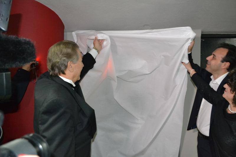 Τα αποκαλυπτήρια της πλακέτας ονομασίας της αίθουσας Πνευματικού Κέντρου σε «Αίθουσα Δημήτρη Καβράκου» πραγματοποίησε ο Δήμαρχος Τρικκαίων κ. Δημήτρης Παπαστεργίου με τον κ. Δημήτρη Καβράκο.