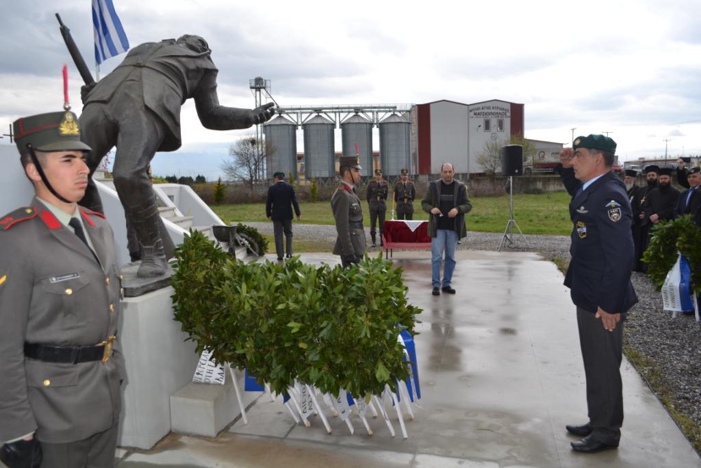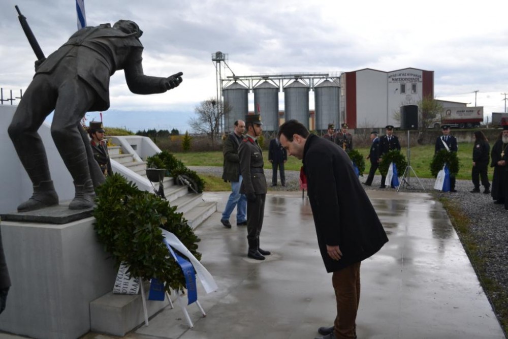 Ακολούθησε η κατάθεση στεφάνων όπου, εκ μέρους του Περιφερειάρχη Θεσσαλίας κ. Κώστα Αγοραστού στεφάνι κατέθεσε ο Αντιπεριφερειάρχης Τρικάλων κ. Χρήστος Μιχαλάκης. Ακόμη κατέθεσαν, εκ μέρους των Ενόπλων Δυνάμεων ο Διοικητής της 1ης Στρατιάς Αντιστράτηγος κ. Δημόκριτος Ζερβάκης, ο Δημάρχος Τρικκαίων κ. Δημήτρη Παπαστεργίου, , ο Αστυνομικός Δ/ντής κ. Γεώργιος Σπηλιόπουλος, ο Διοικητής της Πυροσβεστικής Υπηρεσίας κ. Αντώνιος Σπανός καθώς και πλήθος εκπροσώπων φορέων και συλλόγων. Τέλος , στεφάνι και άνθη κατέθεσαν στο Μνημείο και οι συγγενείς –απόγονοι των πεσόντων Στρατιωτών Κουκοράβα Ηλία, Κωστίμπα Δημητρίου και Μπελετσιώτη Βασιλείου καθώς και μέλη της οικογένειας Κασλά στη μνήμη του Ταγματάρχη Δ. Κασλά.
