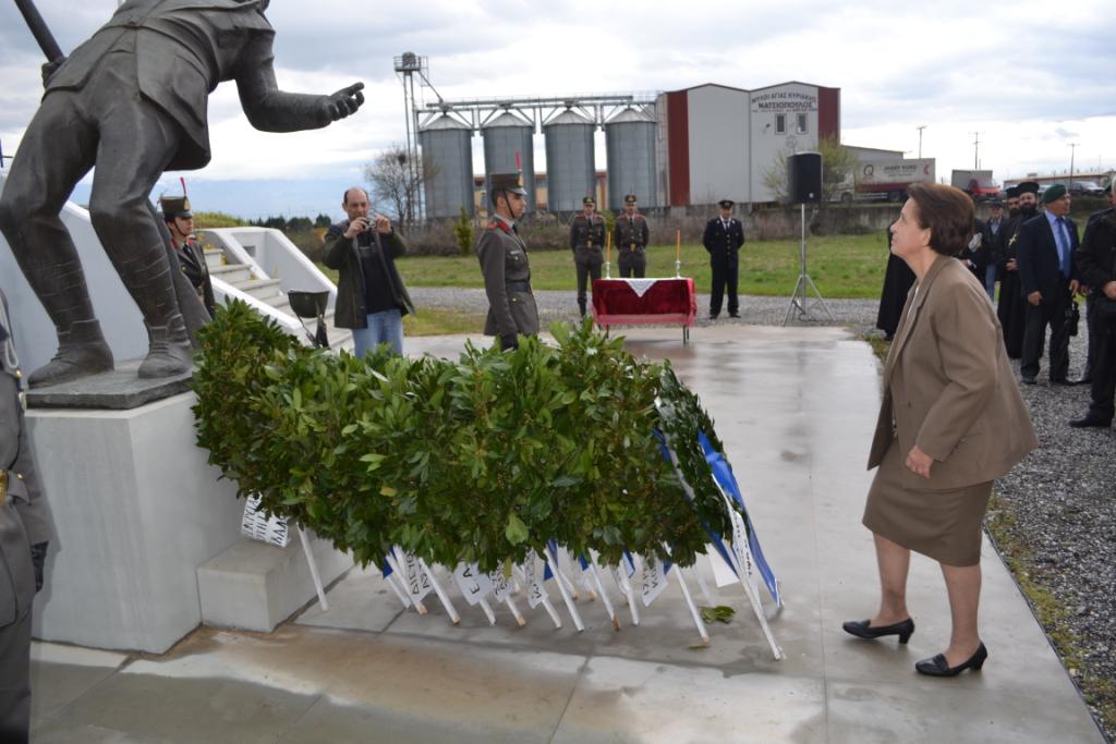 Ακολούθως, ο Αντιπεριφερειάρχης Τρικάλων κ. Χρήστος Μιχαλάκης ξενάγησε στον χώρο τον Διοικητή της 1ης Στρατιάς Αντιστράτηγο κ. Δημόκριτο Ζερβάκη, ο οποίος και εκδήλωσε τον θαυμασμό του για το Μνημείο. Ο κ. Μιχαλάκης αναφέρθηκε στην κατασκευή του, που ξεκίνησε από τη Νομαρχιακή Αυτοδιοίκηση Τρικάλων και ολοκληρώθηκε από την Περιφέρεια Θεσσαλίας –Περιφερειακή Ενότητα Τρικάλων.