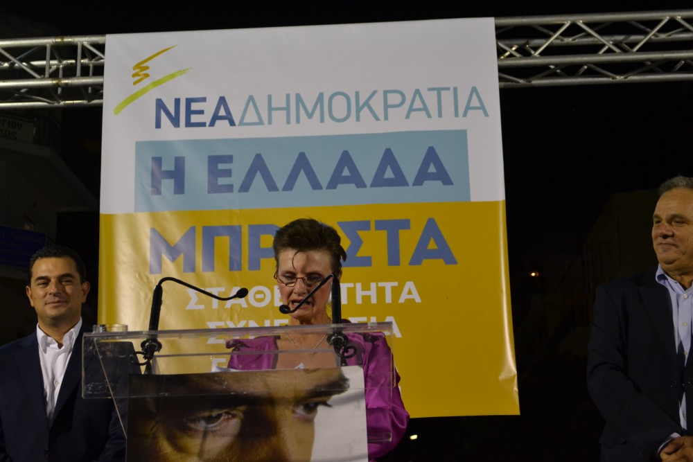 Κεντρικός ομιλητής ήταν ο επικεφαλής του ψηφοδελτίου Επικρατείας πρώην πρύτανης Θεόδωρος Φορτσάκης, που μετέφερε μήνυμα νίκης, ενώ νωρίτερα σύντομες ομιλίες εκφώνησαν οι υποψήφιοι βουλευτές της Ν.Δ. στο νομό.