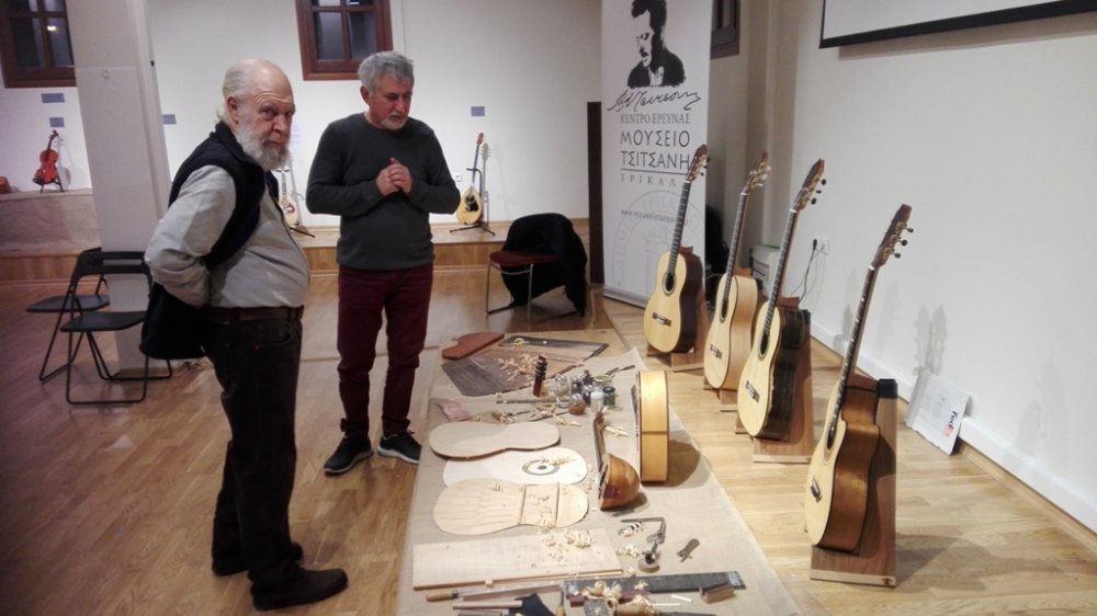 Μια ξεχωριστή έκθεση για την κατασκευή μουσικών οργάνων άνοιξε απόψε τις πύλες της στο Μουσείο Τσιτσάνη, έναν χώρο οικείο για τη μουσική. Στην έκθεση οι Νίκος Φρονιμόπουλος, Βασίλης Λαζαρίδης και Θοδωρής Γκόλιας παρουσιάζουν την τέχνη τους. Ο Νίκος Φρονιμόπουλος, η τέχνη του οποίου καλύπτει όλα τα είδη εγχόρδων, τα οποία κατασκευάζει ο ίδιος από την αρχή μέχρι και την τελευταία «πινελιά». Ψάχνει, βρίσκει και μελετάει οποιοδήποτε «παλιό όργανο, το οποίο έχει σχέση με την ελληνική οργανοποιία».