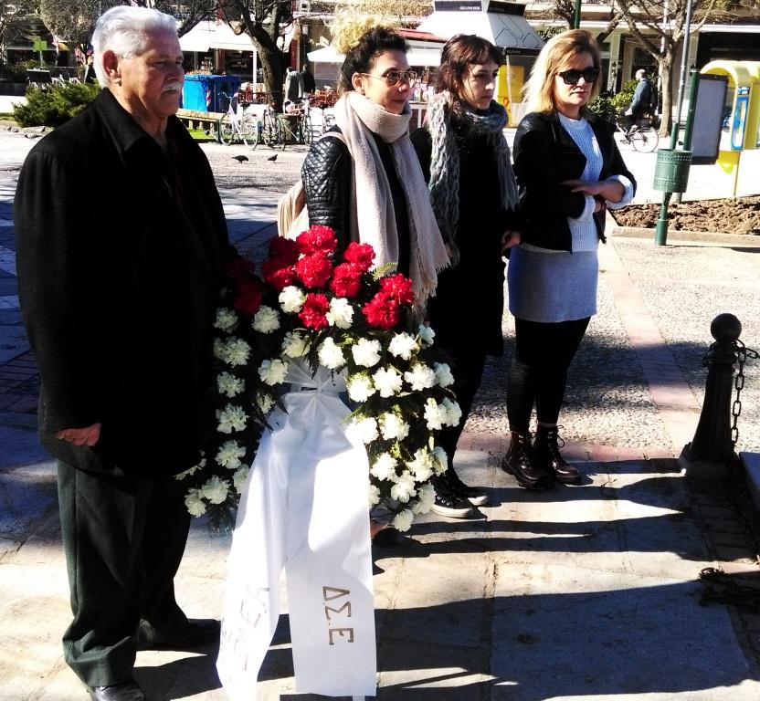 Χώρας, το Παράρτημα Τρικάλων της ΠΕΑΕΑ-ΔΣΕ μαζί με την ΚΝΕ κατέθεσαν στεφάνι στο Μνημείο των 5 ΕΠΟΝιτών στην Πλατεία Ρήγα Φεραίου.