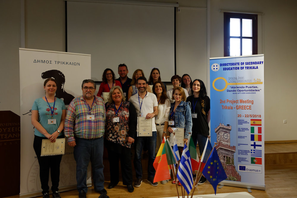 Η Διεύθυνση Δευτεροβάθμιας Εκπαίδευσης Τρικάλων φιλοξένησε από τις 20 έως τις 23/5, τους Ευρωπαίους εταίρους οργανισμούς από την Ισπανία, την Ιταλία, τη Ρουμανία, την Πορτογαλία και τη Φινλανδία, που λαμβάνουν μέρος στο ευρωπαϊκό πρόγραμμα Erasmus+ με τίτλο “Abriendo Puertas, Dando Oportunidades” (Ανοίγοντας Πόρτες, Δίνοντας Ευκαιρίες). Από ελληνικής πλευράς συμμετείχαν η Διευθύντρια κα Βασιλική Κάκλα και η παιδαγωγική ομάδα του προγράμματος από το προσωπικό της ΔΔΕ Τρικάλων.