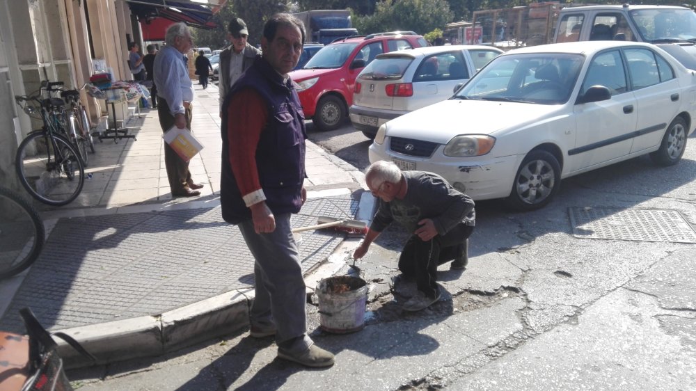 Κι όμως σε μια πόλη που την περασμένη εβδομάδα είχαμε μπροστά τις κάμερες δύο πτώσεις (ένας τραυματισμό) και άγνωστα πόσα άλλα πεσίματα από σπασμένα πλακάκια στα πεζοδρόμια του ΚΕΝΤΡΟΥ της πόλης, το να δεις εργάτη του δήμου να κρατάει μυστρί… και να φτιάχνει πεζοδρόμιο ΕΙΝΑΙ ΕΙΔΗΣΗ!!!