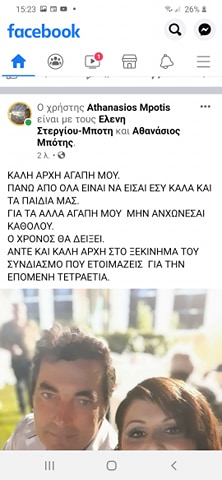 Καλή επιτυχία συζυγε Αθανασιε Μπότη για το 2023…….