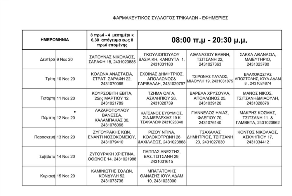 Δείτε τα εφημερεύοντα φαρμακεία των Τρικάλων