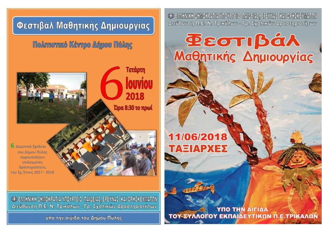 Η Διεύθυνση Πρωτοβάθμιας Εκπαίδευσης, μέσω του Γραφείου Σχολικών Δραστηριοτήτων, διοργανώνει Φεστιβάλ Μαθητικής Δημιουργίας σε όλο το Νομό Τρικάλων. Τα Φεστιβάλ Μαθητικής Δημιουργίας πραγματοποιούνται στο πλαίσιο των γιορτών μαθητικής δημιουργίας οι οποίες τελούν υπό την έγκριση του Υπουργείου Παιδείας, Έρευνας και Θρησκευμάτων και εντάσσονται σε μια σειρά δράσεων και συνεργασιών που έχει αναπτύξει τα τελευταία χρόνια η Διεύθυνση Πρωτοβάθμιας Εκπαίδευσης του Νομού Τρικάλων με Δήμους, Συλλόγους, Οργανισμούς και Οργανώσεις προκειμένου να συνδεθεί η σχολική ζωή με τις τοπικές κοινωνίες. Στόχος των Φεστιβάλ είναι η καλλιέργεια πολιτισμικής συνείδησης καθώς και η σύσφιξη των σχέσεων μεταξύ των μαθητών και αυριανών ενήλικων πολιτών.