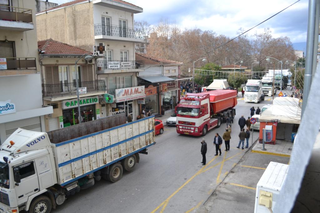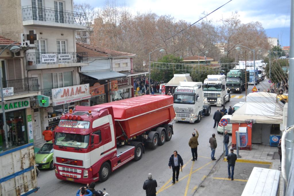 Κάτι παραπάνω από αισθητή έκαναν την παρουσία τους οι ιδιοκτήτες φορτηγών και οι αγρότες το πρωί, αφού διέσχισαν κορνάροντας το κέντρο της πόλης, διαμαρτυρόμενοι και αυτοί για το ασφαλιστικό και όχι μόνο.