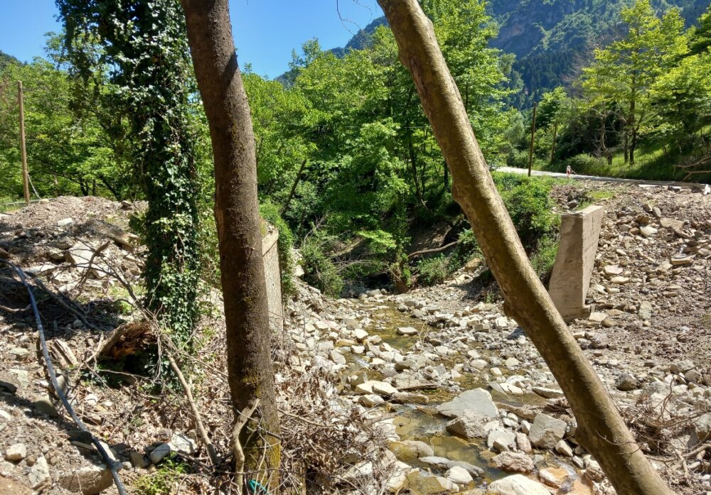 Ετσι είναι σήμερα τα βάθρα που υπήρχε η γέφυρα και απο απ’ αυτήν την τρομερή διάβαση, γίνεται η συγκοινωνία για Στουρναρέικα και Νομό Αρτας!
