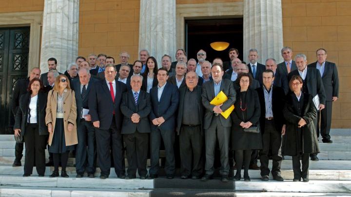 Οικογενειακή φωτογραφία του υπουργικού συμβουλίου μπροστά από τη Βουλή, Τετάρτη 28 Ιανουαρίου 2015. Υπό την προεδρία του πρωθυπουργού Αλέξη Τσίπρα συνεδρίασε το πρώτο υπουργικό συμβούλιο της νέας κυβέρνησης. ΑΠΕ-ΜΠΕ/ΑΠΕ-ΜΠΕ/ΠΑΝΤΕΛΗΣ ΣΑΙΤΑΣ